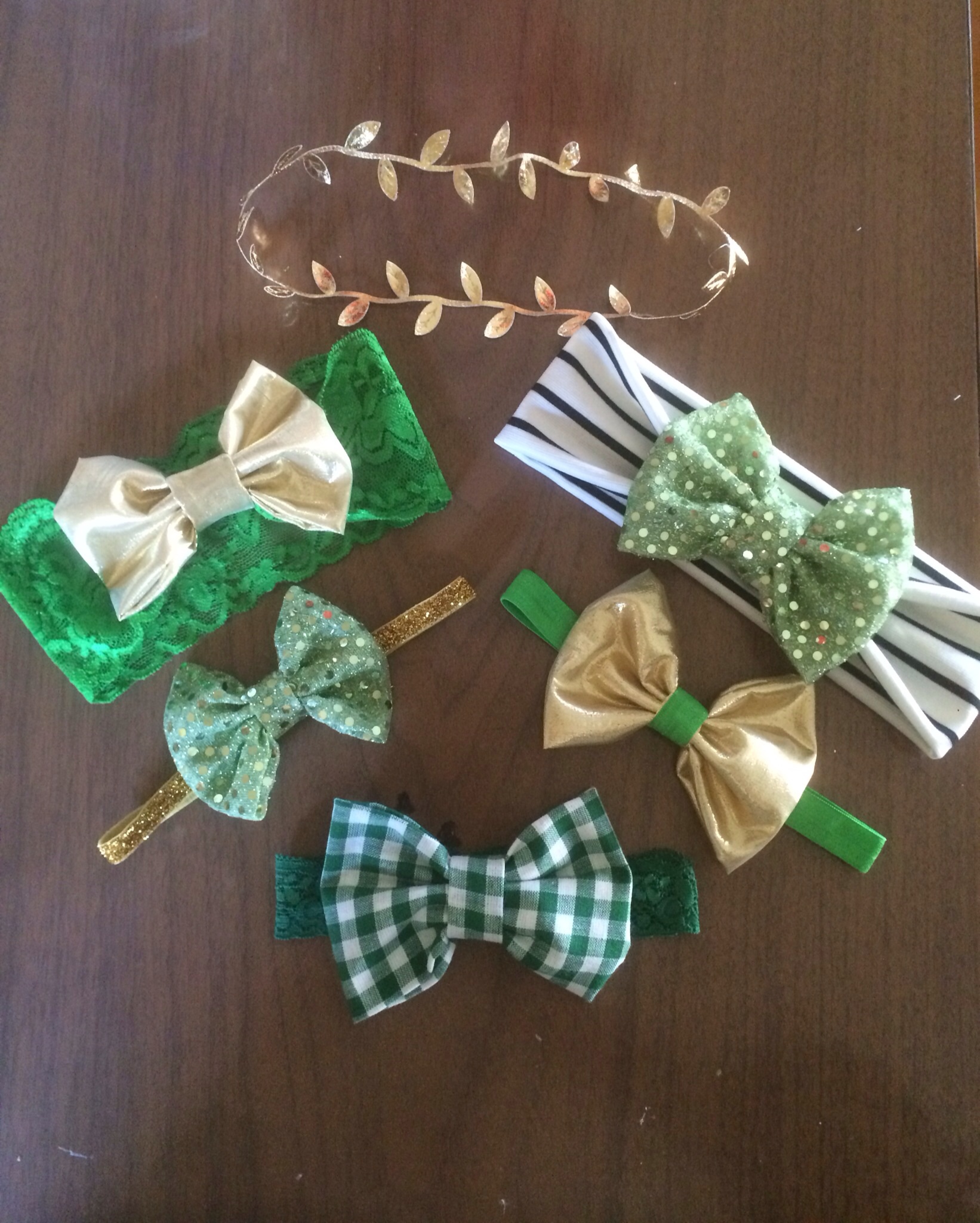 The bow measures approx. 4" long and comes attached to a 5/8" elastic headband.